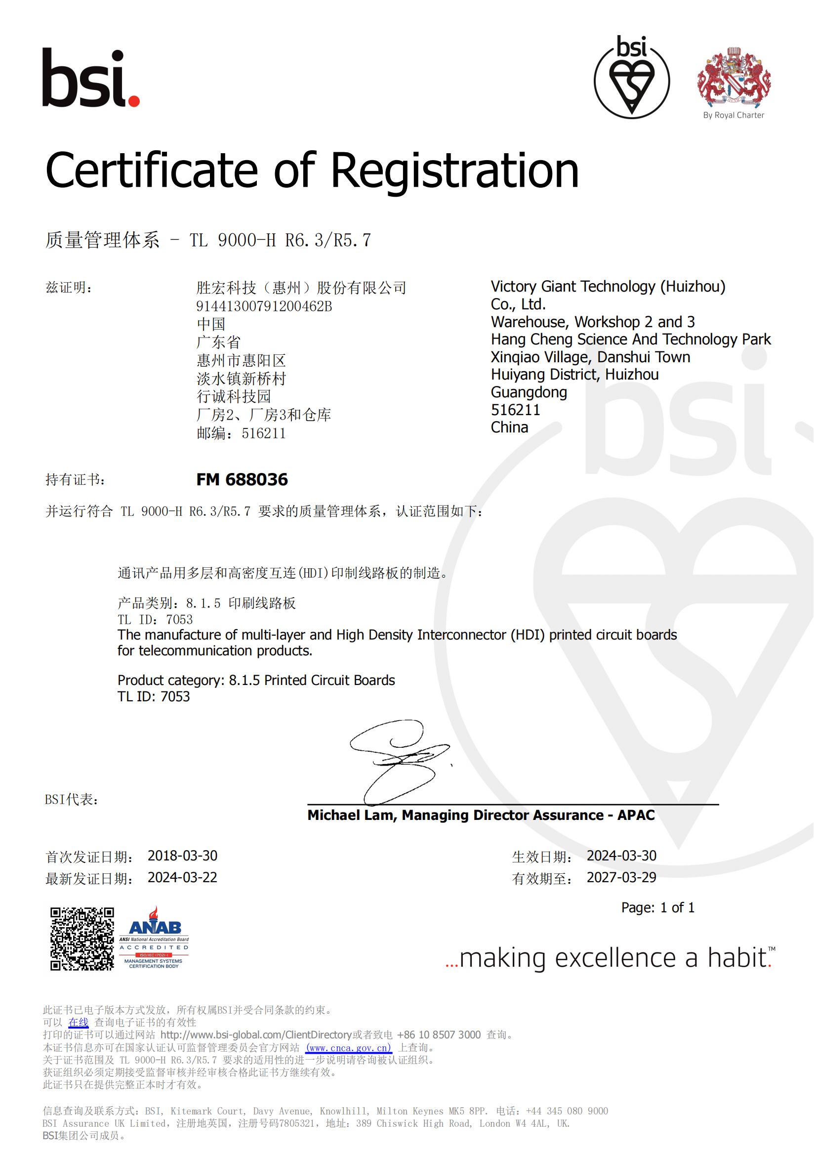 IATF169492016汽車行業質量管理體系證書