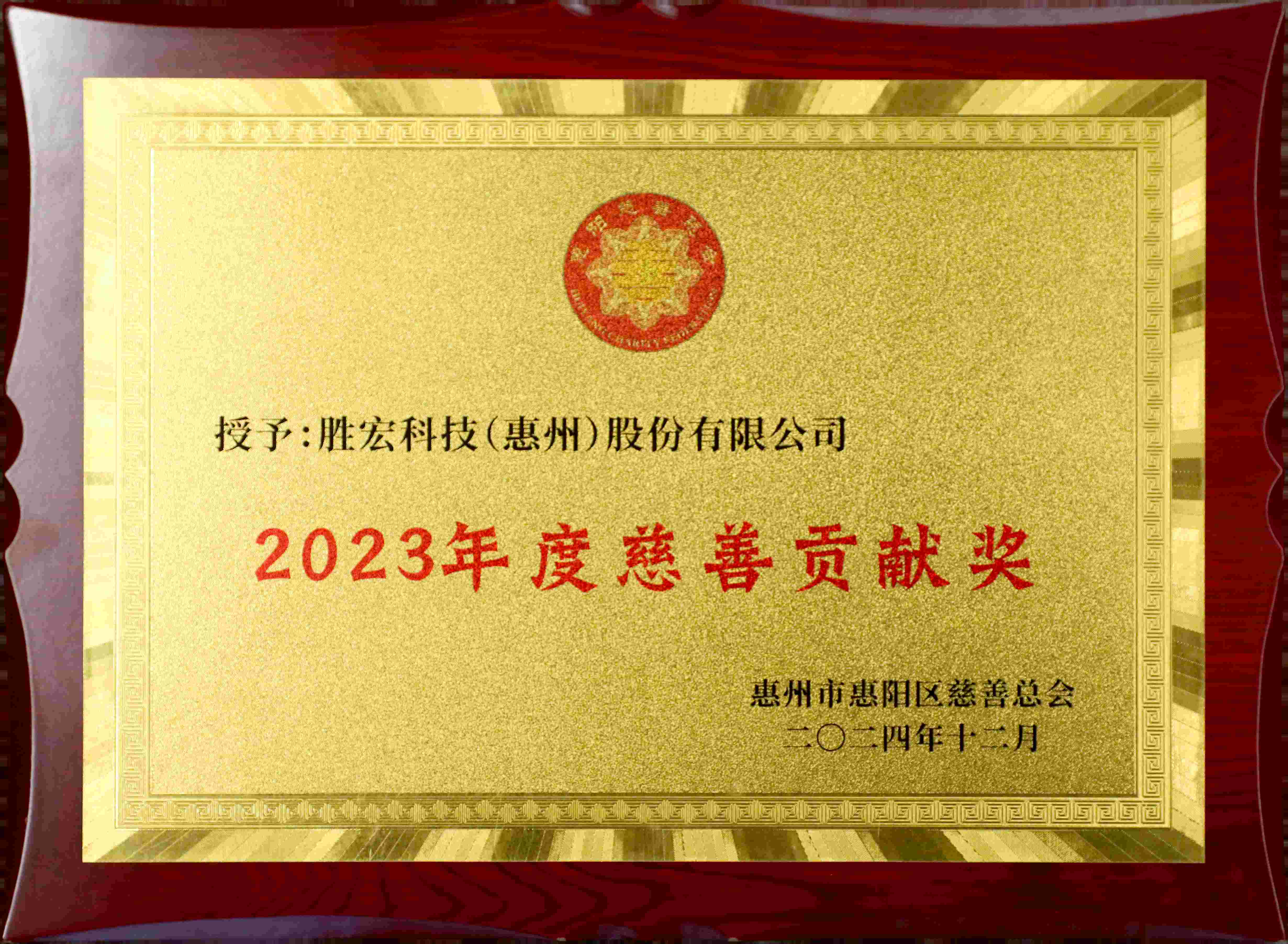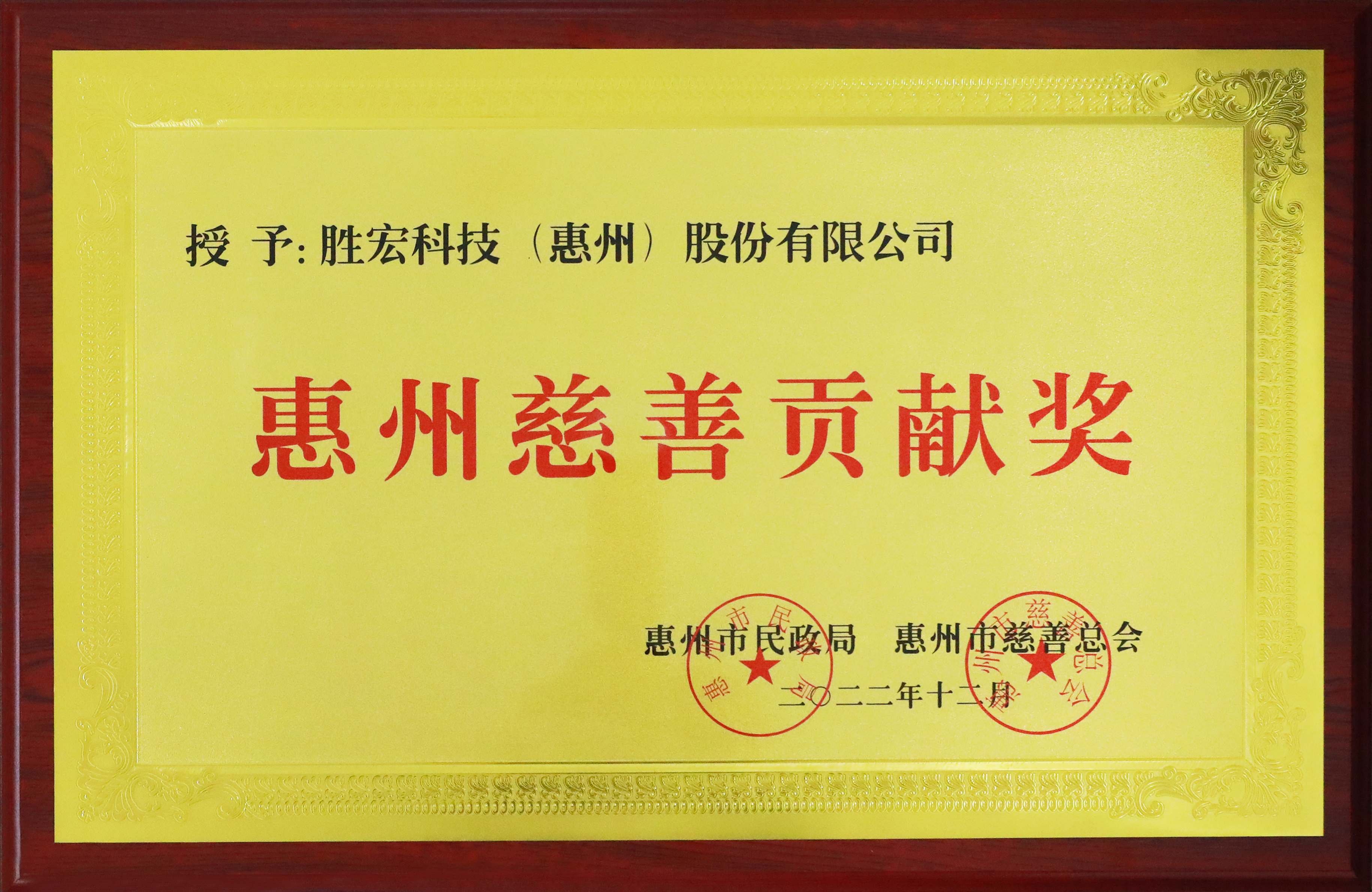 獲得2022年惠州慈善貢獻獎