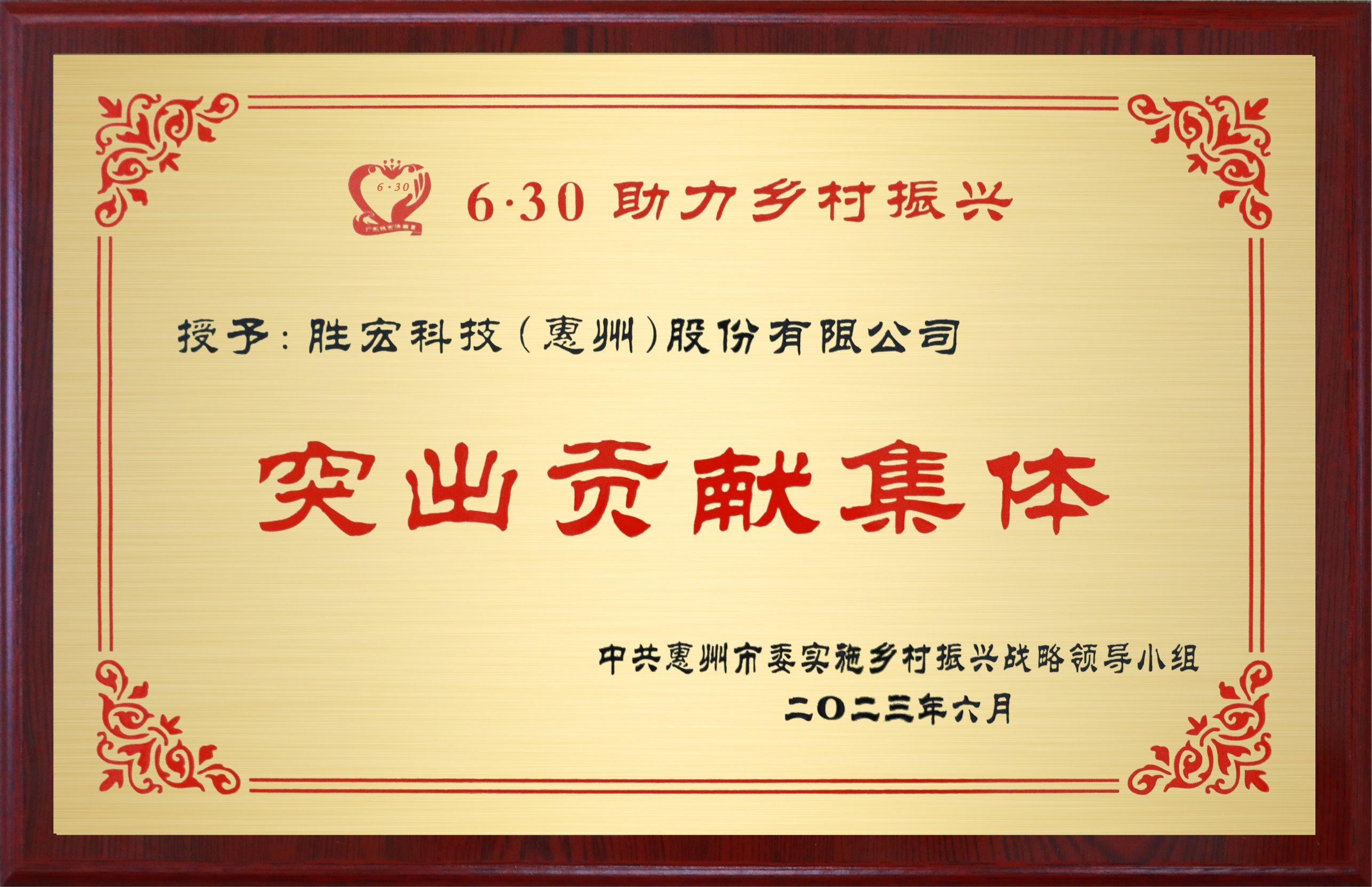 榮獲惠州市鄉(xiāng)村振興“突出貢獻集體”